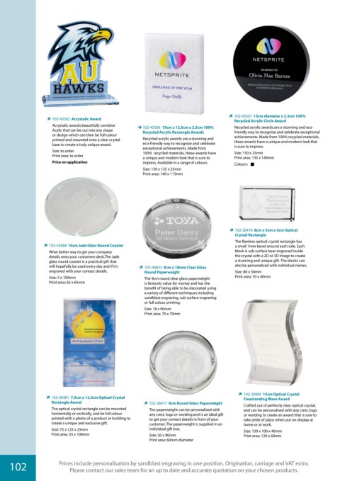 Acrystalic awards beautifully combine 102-43506 15cm x 12.5cm x 2.5cm 100% Recycled acrylic awards are a stunning and eco-