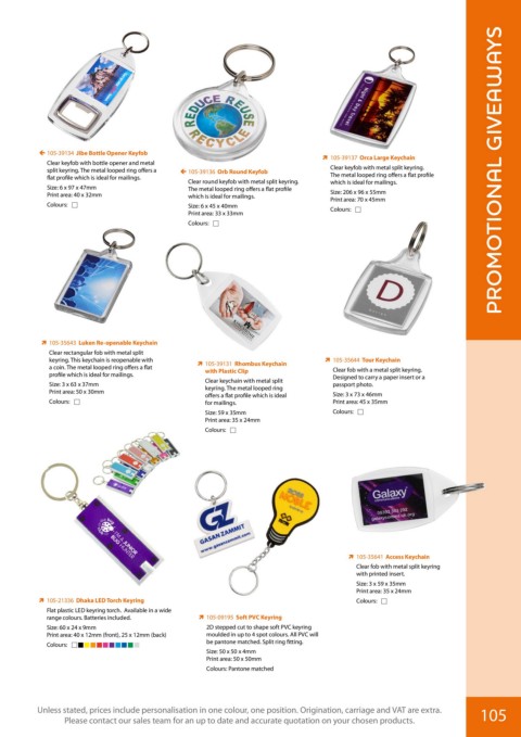 Unless stated, prices include personalisation in one colour, one position. Origination, carriage and VAT are extra. 105