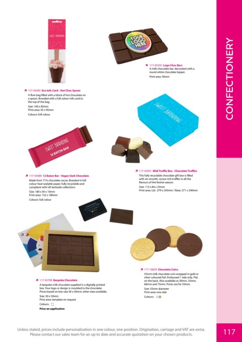 Unless stated, prices include personalisation in one colour, one position. Origination, carriage and VAT are extra. 117