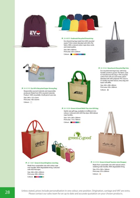 28 Unless stated, prices include personalisation in one colour, one position. Origination, carriage and VAT are extra.