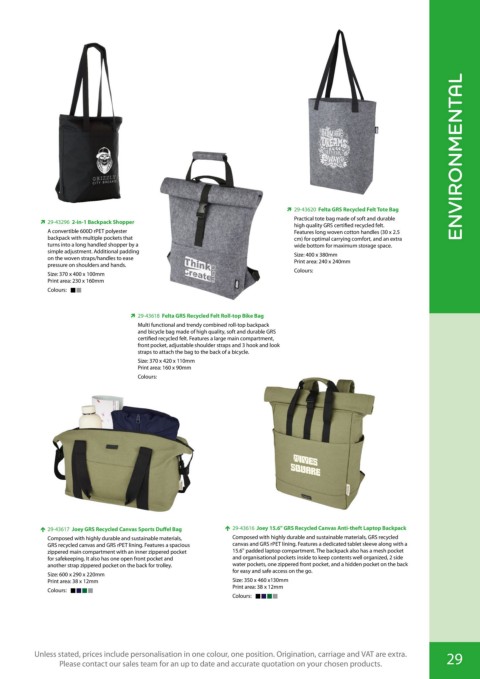Unless stated, prices include personalisation in one colour, one position. Origination, carriage and VAT are extra. 29