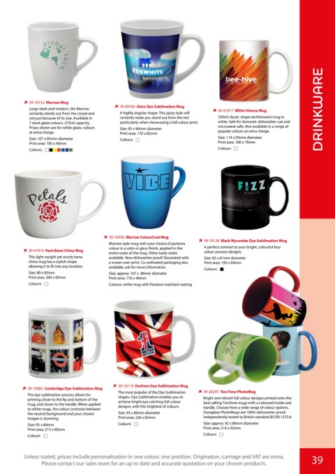 Unless stated, prices include personalisation in one colour, one position. Origination, carriage and VAT are extra. 39
