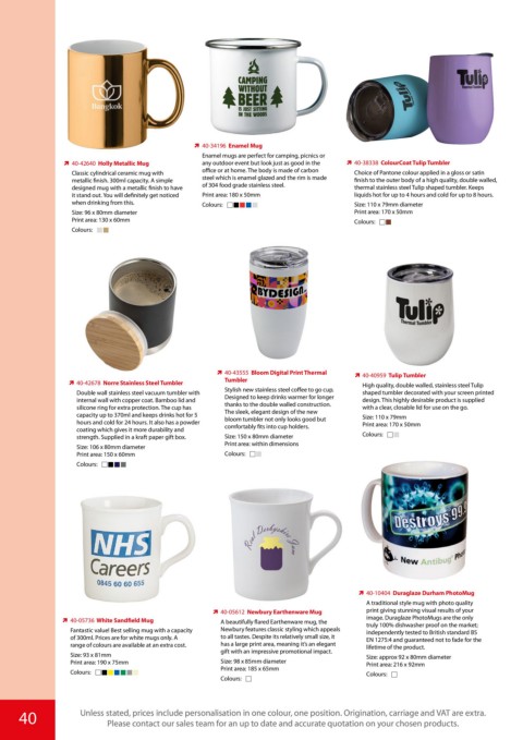 Unless stated, prices include personalisation in one colour, one position. Origination, carriage and VAT are extra.