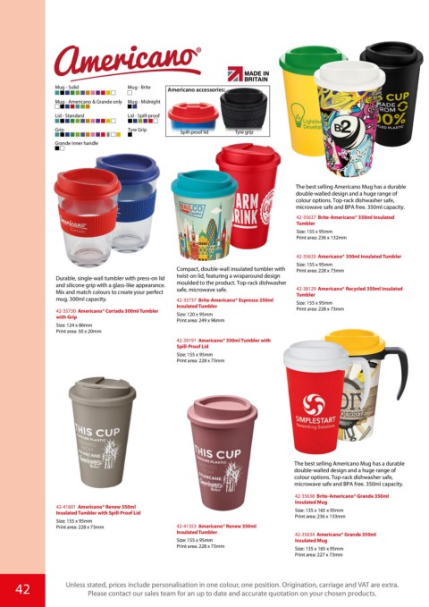 Mix and match colours to create your perfect safe, microwave safe. 42-38129 Americano® Recycled 350ml Insulated