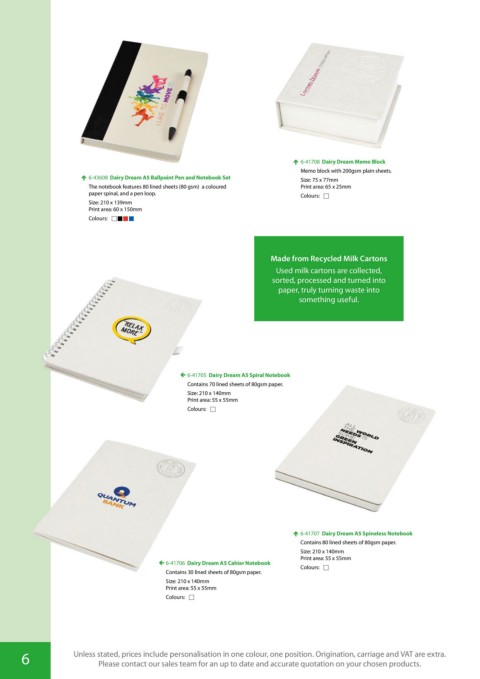 6 Unless stated, prices include personalisation in one colour, one position. Origination, carriage and VAT are extra.