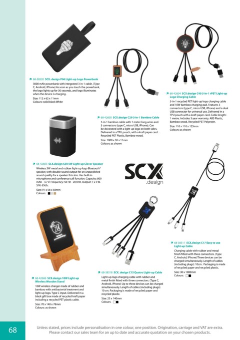 when the device is charging. 68-42604 SCX.design C40 3-in-1 rPET Light-up