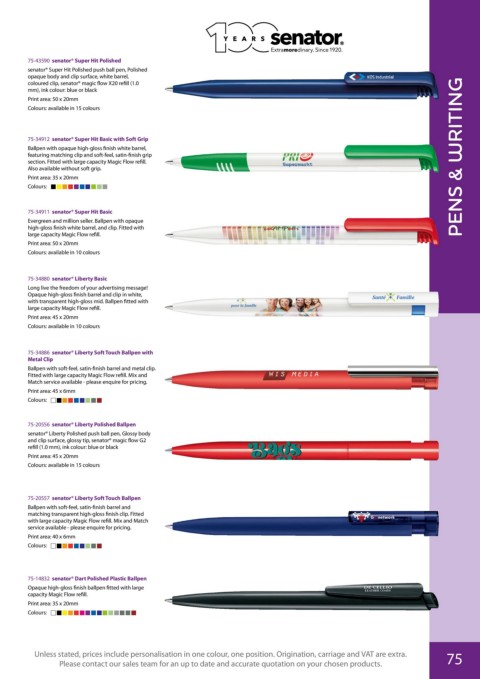 Unless stated, prices include personalisation in one colour, one position. Origination, carriage and VAT are extra. 75