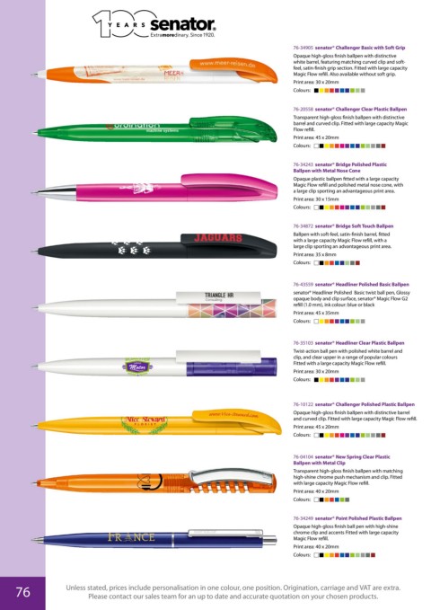 76 Unless stated, prices include personalisation in one colour, one position. Origination, carriage and VAT are extra.