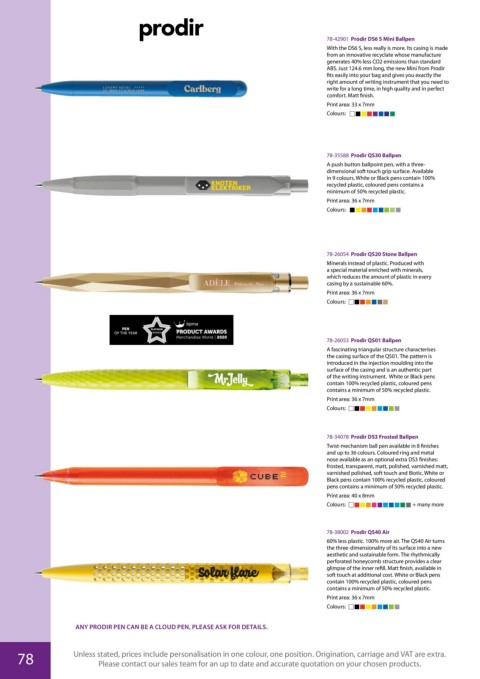 78 Unless stated, prices include personalisation in one colour, one position. Origination, carriage and VAT are extra.