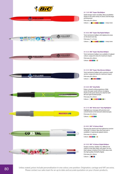 80 Unless stated, prices include personalisation in one colour, one position. Origination, carriage and VAT are extra.