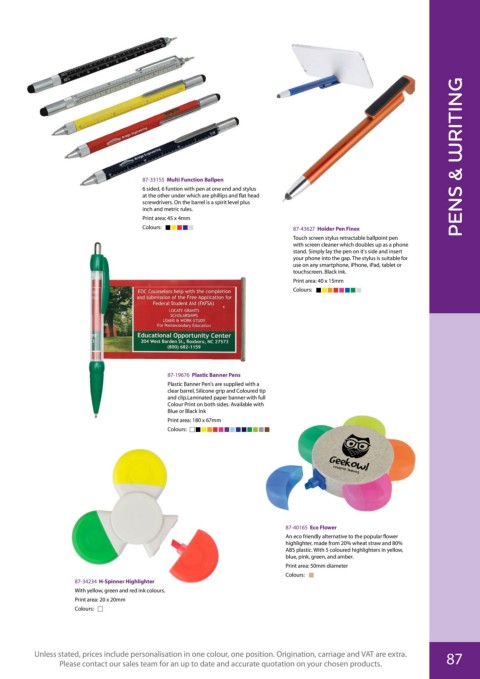Unless stated, prices include personalisation in one colour, one position. Origination, carriage and VAT are extra. 87