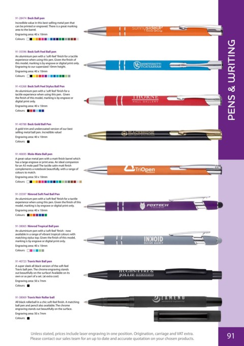 Unless stated, prices include personalisation in one colour, one position. Origination, carriage and VAT are extra. 91