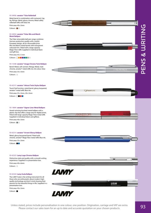 Unless stated, prices include personalisation in one colour, one position. Origination, carriage and VAT are extra. 93