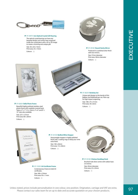 Unless stated, prices include personalisation in one colour, one position. Origination, carriage and VAT are extra. 97
