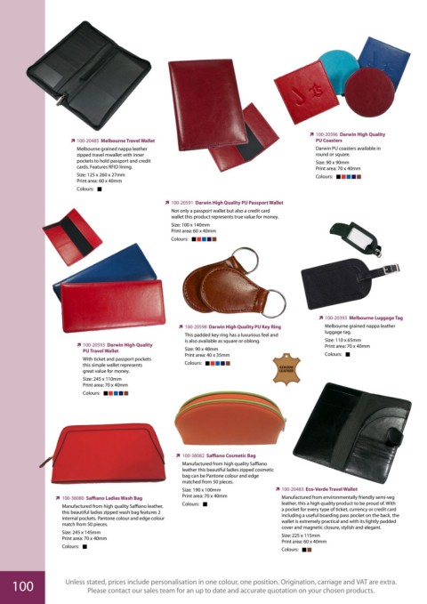 100 Unless stated, prices include personalisation in one colour, one position. Origination, carriage and VAT are extra.