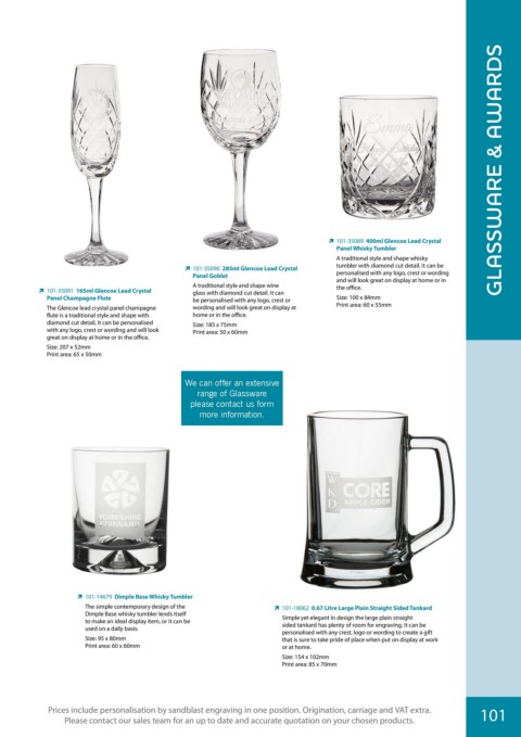 Unless stated, prices include personalisation in one colour, one position. Origination, carriage and VAT are extra. 101