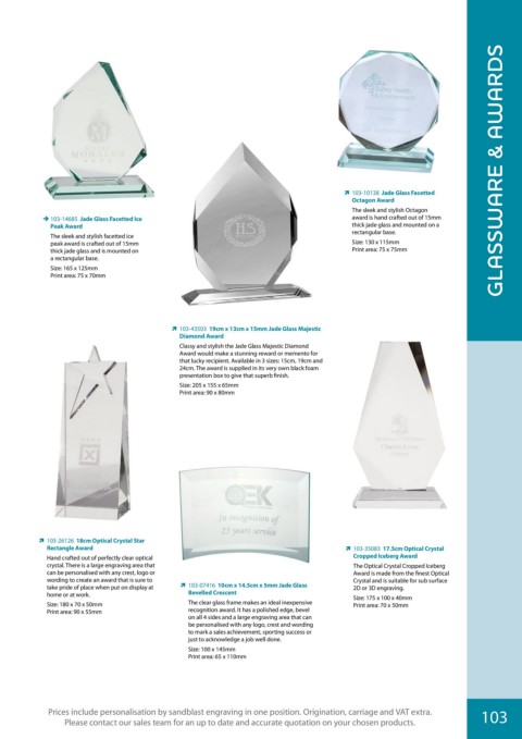 Unless stated, prices include personalisation in one colour, one position. Origination, carriage and VAT are extra. 103