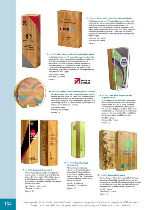 as full colour print or laser engraving. Can be views without being constricted to block award. Sustainably sourced and proven to be a