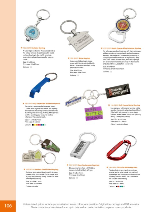 106 Unless stated, prices include personalisation in one colour, one position. Origination, carriage and VAT are extra.