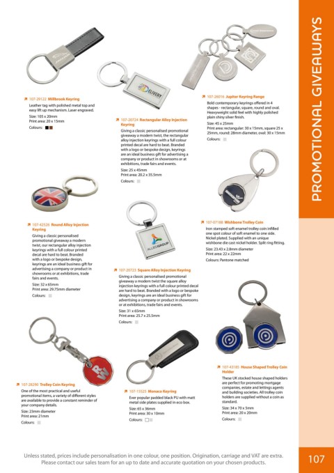 Unless stated, prices include personalisation in one colour, one position. Origination, carriage and VAT are extra. 107