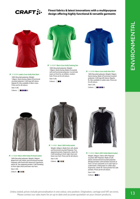 ORGANIC COTTON Unless stated, prices include personalisation in one colour, one position. Origination, carriage and VAT are extra. 13