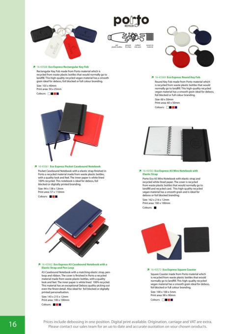 16 Unless stated, prices include personalisation in one colour, one position. Origination, carriage and VAT are extra.