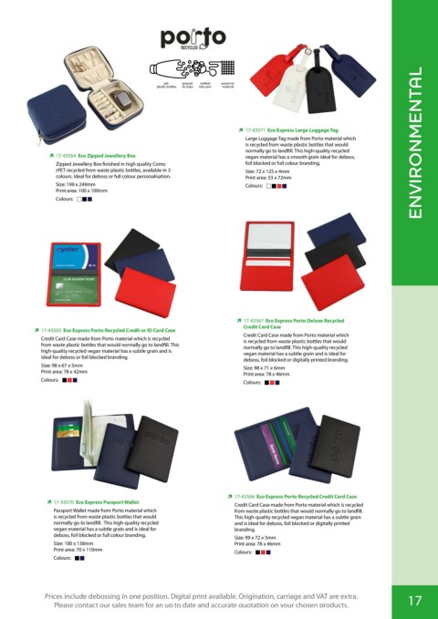 Unless stated, prices include personalisation in one colour, one position. Origination, carriage and VAT are extra. 17