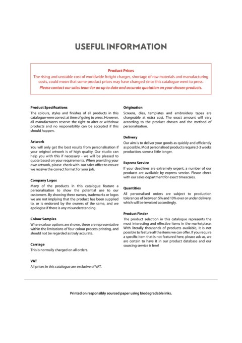 costs, could mean that some product prices may have changed since this catalogue went to press.