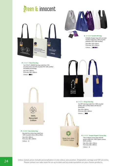 24 Unless stated, prices include personalisation in one colour, one position. Origination, carriage and VAT are extra.