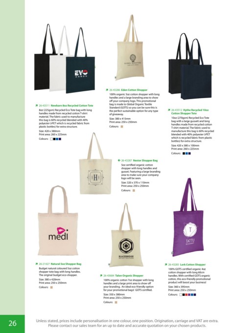 26 Unless stated, prices include personalisation in one colour, one position. Origination, carriage and VAT are extra.