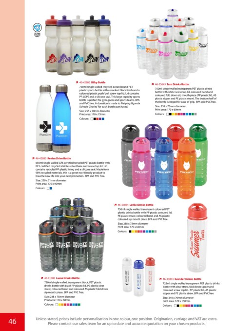 46 Unless stated, prices include personalisation in one colour, one position. Origination, carriage and VAT are extra. .