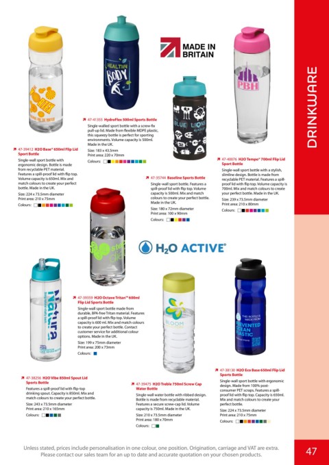 Unless stated, prices include personalisation in one colour, one position. Origination, carriage and VAT are extra. 47