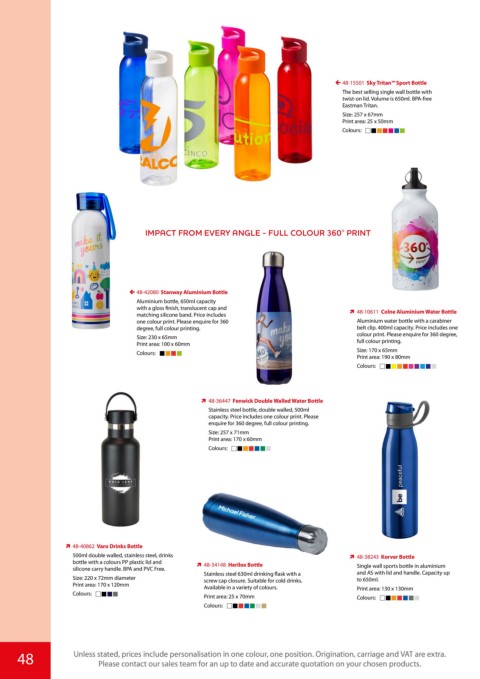 48 Unless stated, prices include personalisation in one colour, one position. Origination, carriage and VAT are extra. .