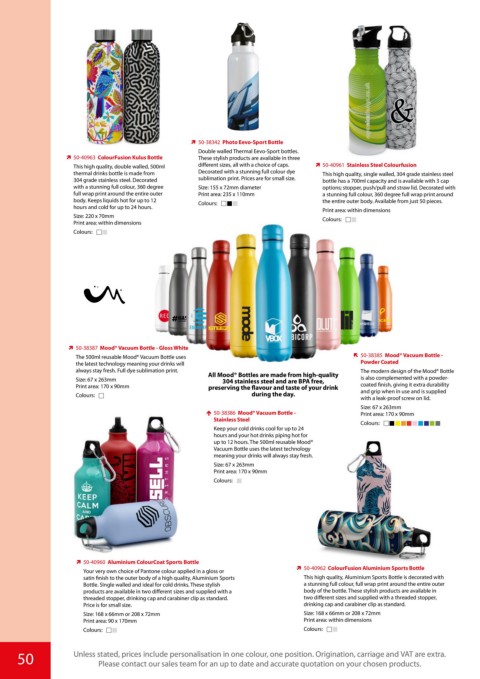 This high quality, double walled, 500ml different sizes, all with a choice of caps. 50-40961 Stainless Steel Colourfusion