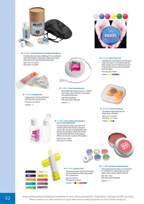 52 Unless stated, prices include personalisation in one colour, one position. Origination, carriage and VAT are extra.