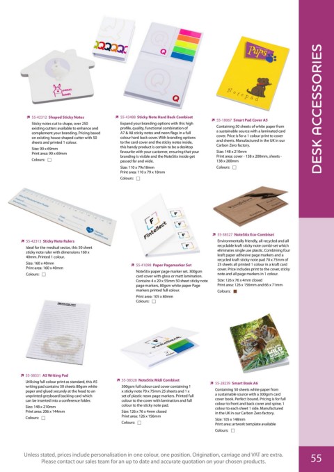 55-42312 Shaped Sticky Notes 55-43488 Sticky Note Hard Back Combiset 55-18067 Smart Pad Cover A5 DESK ACCESSORIES