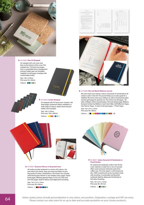 64 Unless stated, prices include personalisation in one colour, one position. Origination, carriage and VAT are extra.