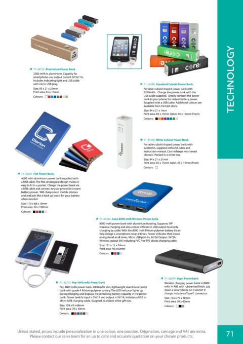 Unless stated, prices include personalisation in one colour, one position. Origination, carriage and VAT are extra. 71
