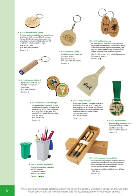 8 Unless stated, prices include personalisation in one colour, one position. Origination, carriage and VAT are extra.