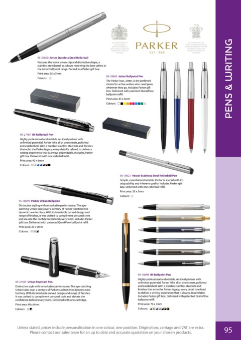 Unless stated, prices include personalisation in one colour, one position. Origination, carriage and VAT are extra. 95